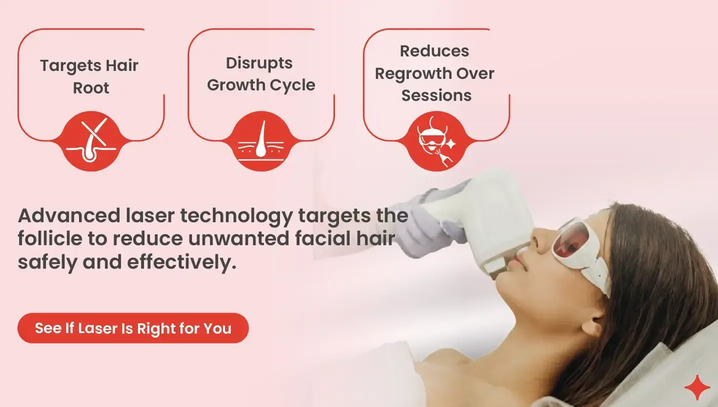 If you’ve tried everything from facial hair removal cream for women to searching for the best facial hair removal machine or wondering how to remove facial hair permanently at home, laser treatment stands out as the best way to remove facial hair with long-term results.