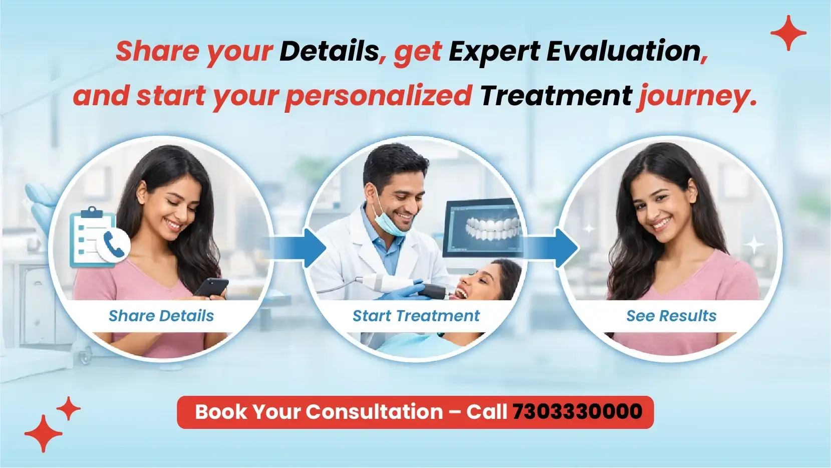 To start your dental treatment with Toothsi, simply contact us at this number, 7303330000, or connect to us on WhatsApp, or you can fill out our contact form, and the team will connect with you to guide you through the next steps