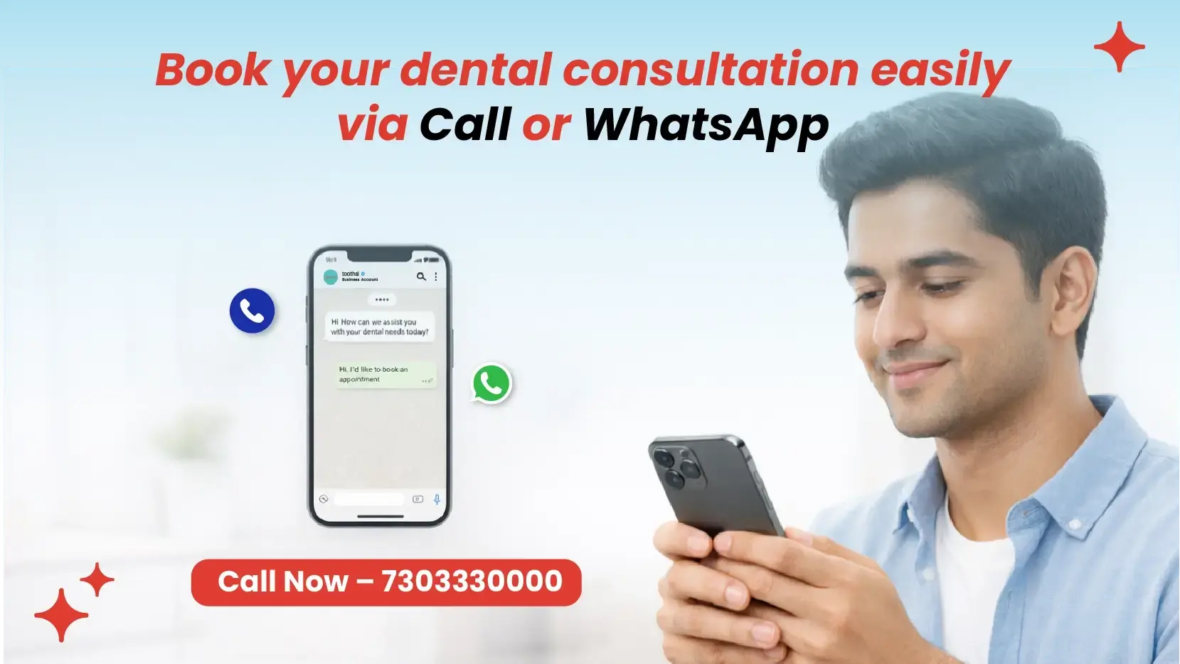Booking your consultation with Toothsi is simple and convenient- yes, simply contact us at this number- 7303330000, or connect to us on WhatsApp, or you can fill out our contact form, and the team will connect with you to guide you through the next steps.