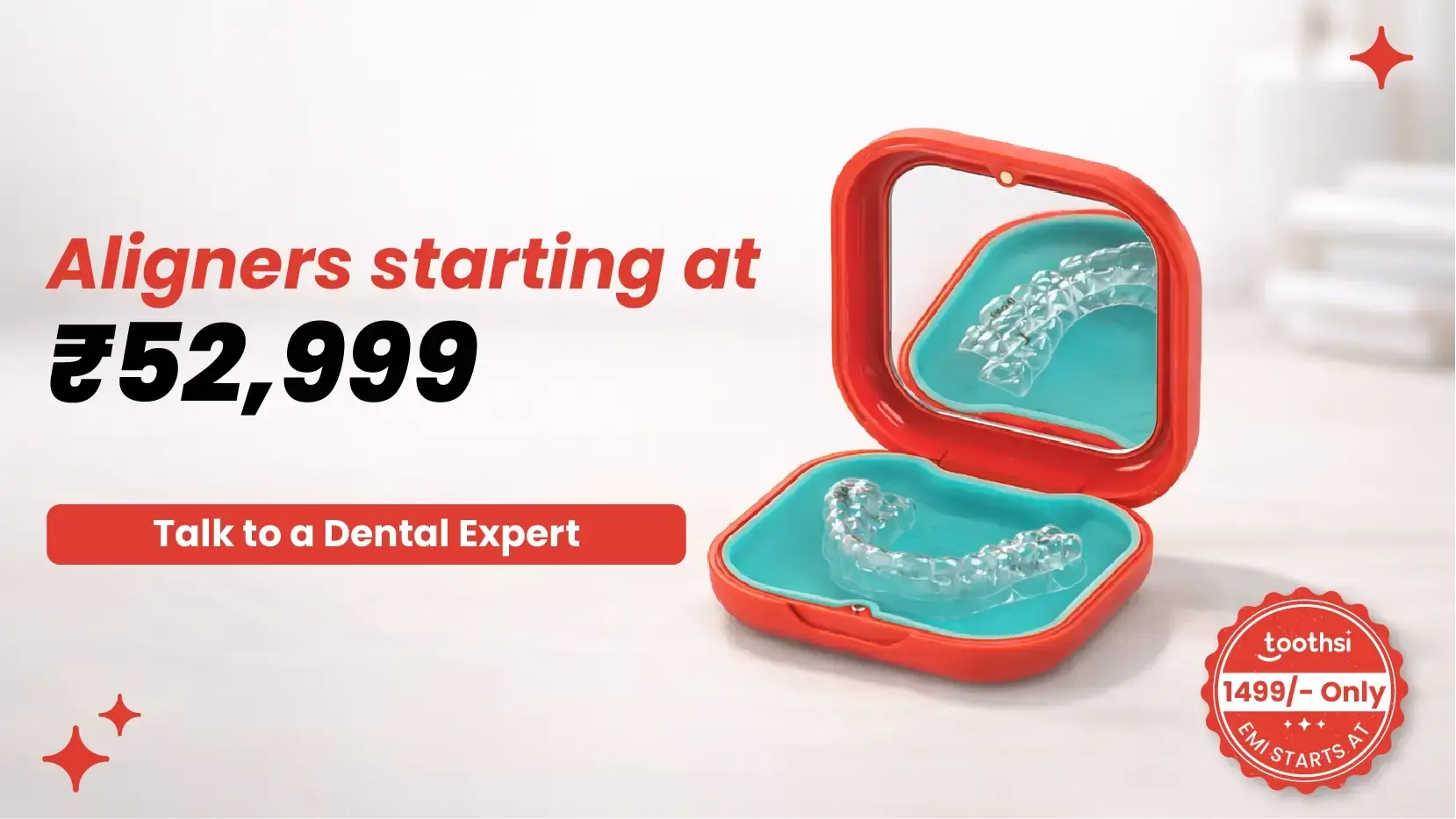 The cost of teeth aligners at Toothsi starts from Rs. 52,999 (we have special offers for students). Please note the cost of teeth aligners also depends on factors like the teeth misalignment condition, treatment complexity, and treatment duration.