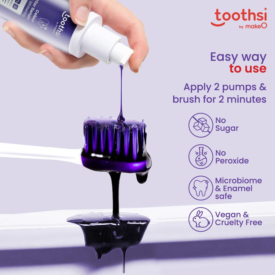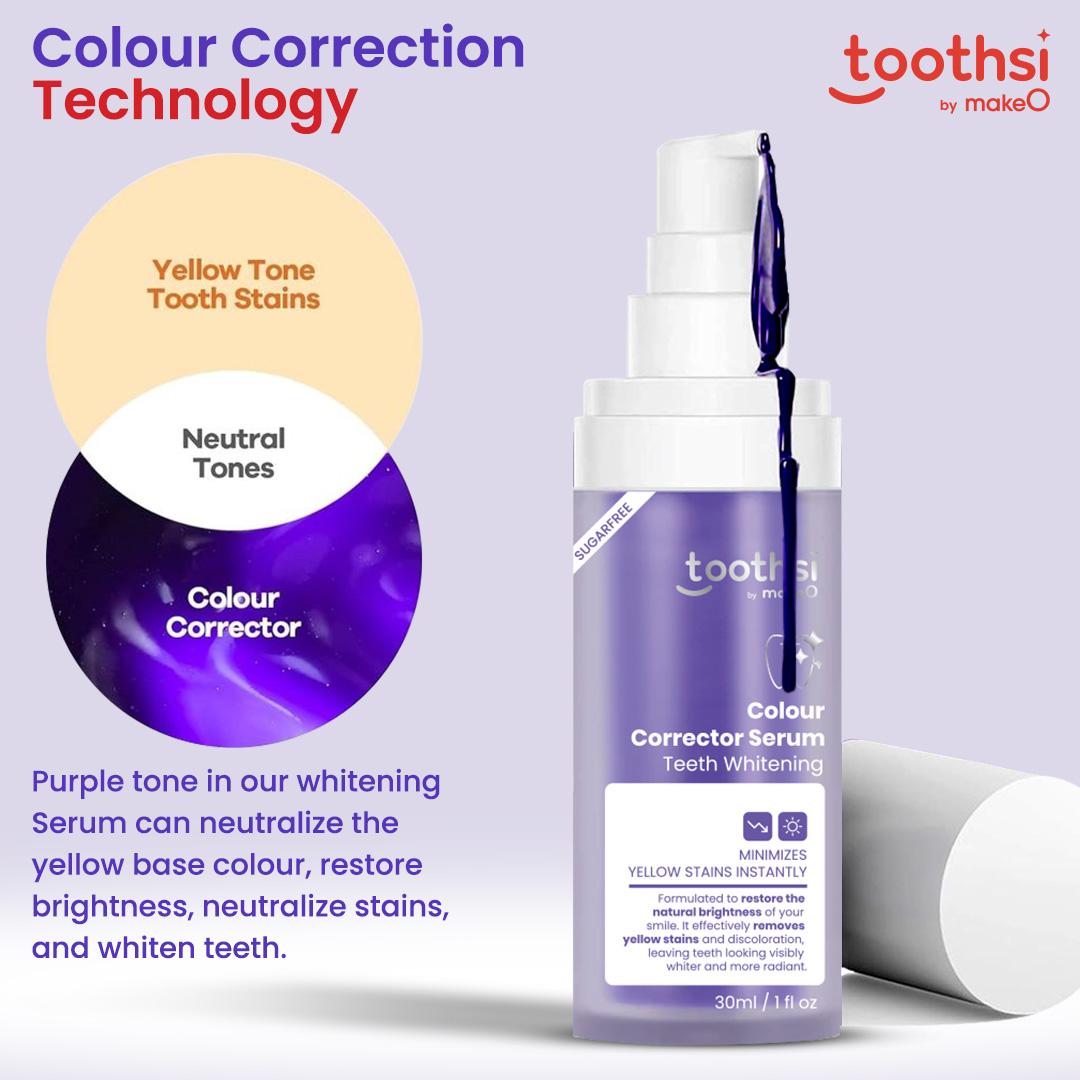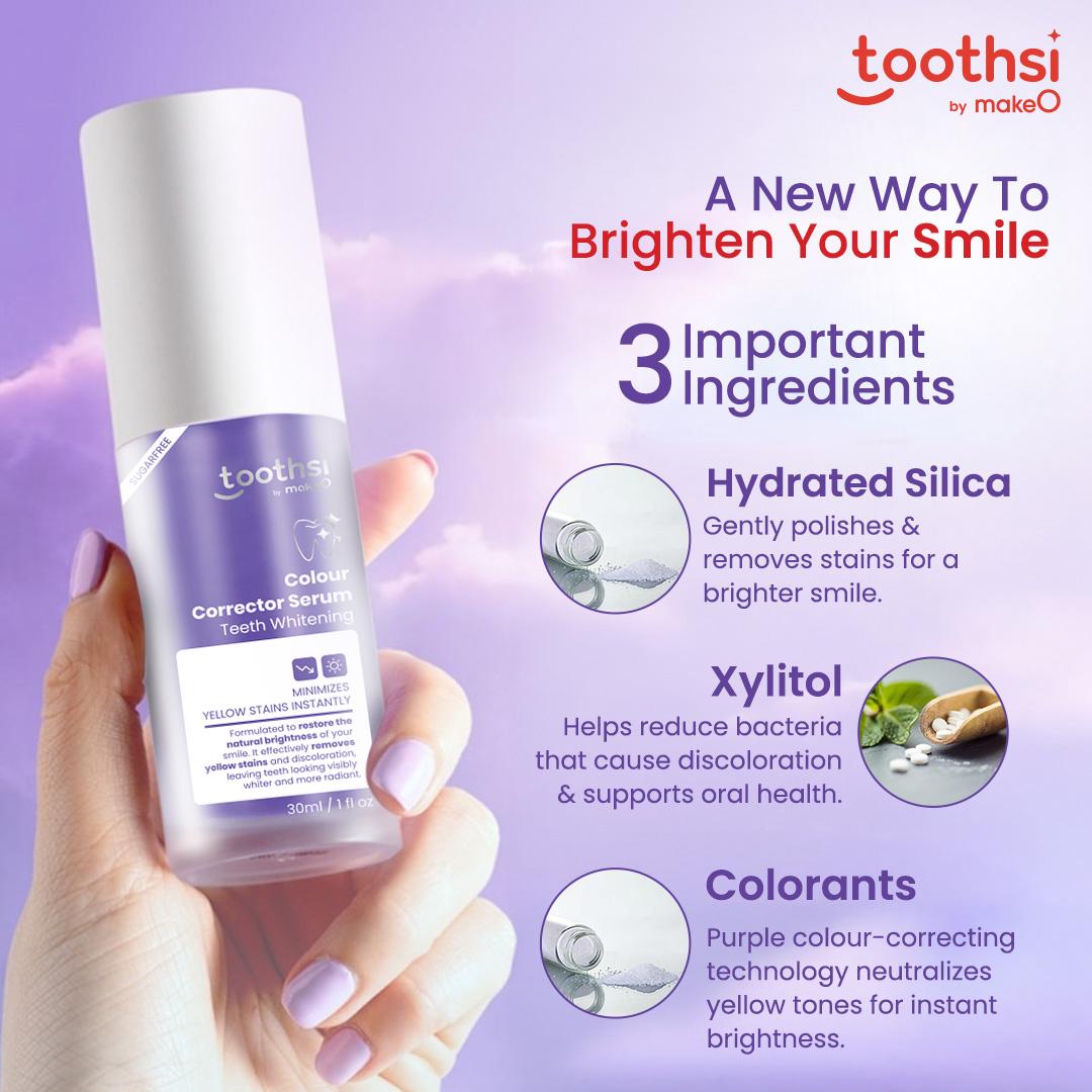 - Achieve a brighter, healthier smile with toothsi Colour Corrector Serum—your instant, safe, and effortless whitening solution!