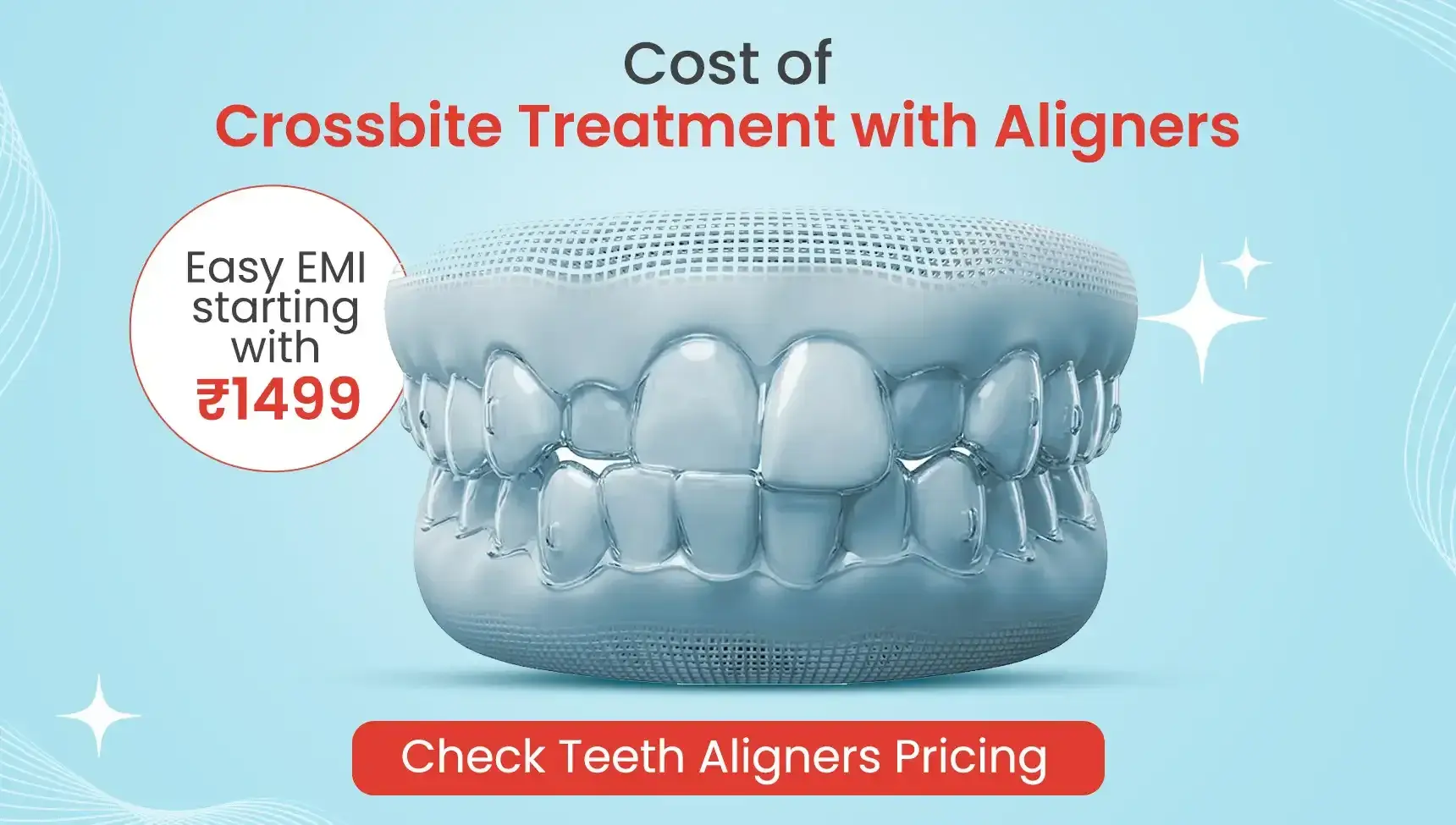 The crossbite treatment with the help of aligners starts from Rs 52,999. You have an easy EMI Option to pay which starts with Rs 16,999 / month.
