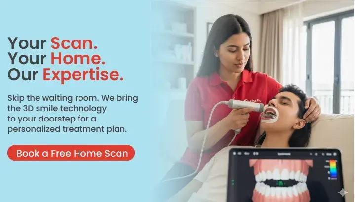 This is the first step towards fixing crowded teeth from Toothsi. From our team a - Toothsi pro visits your home to take a 3D scan of your teeth. This helps our orthodontists to assess whether your crowding is mild, moderate, or severe crowding teeth, and decide the best treatment plan.